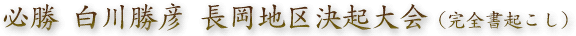坂本竜馬や高杉晋作が飛び出したように、この白川勝彦も飛び出していけば、必ずこの新潟5区のみなさんが白川を見殺しにするはずはないと思っています。どうか皆さんのお力添えを心からお願い申し上げます。